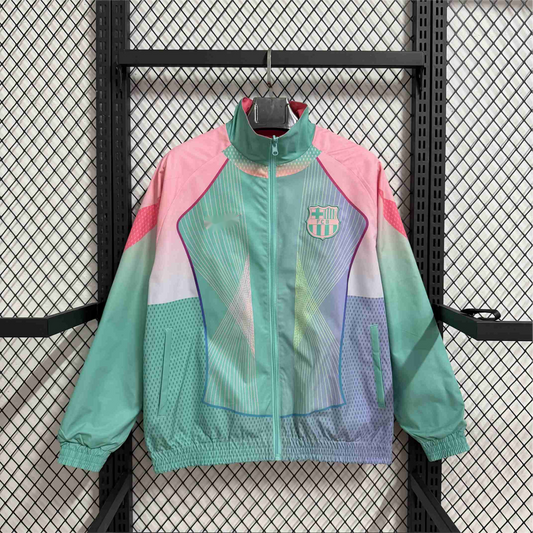 2025-26 Barcelona Pink Green Special Edition Reversible Waterproof Windbreaker